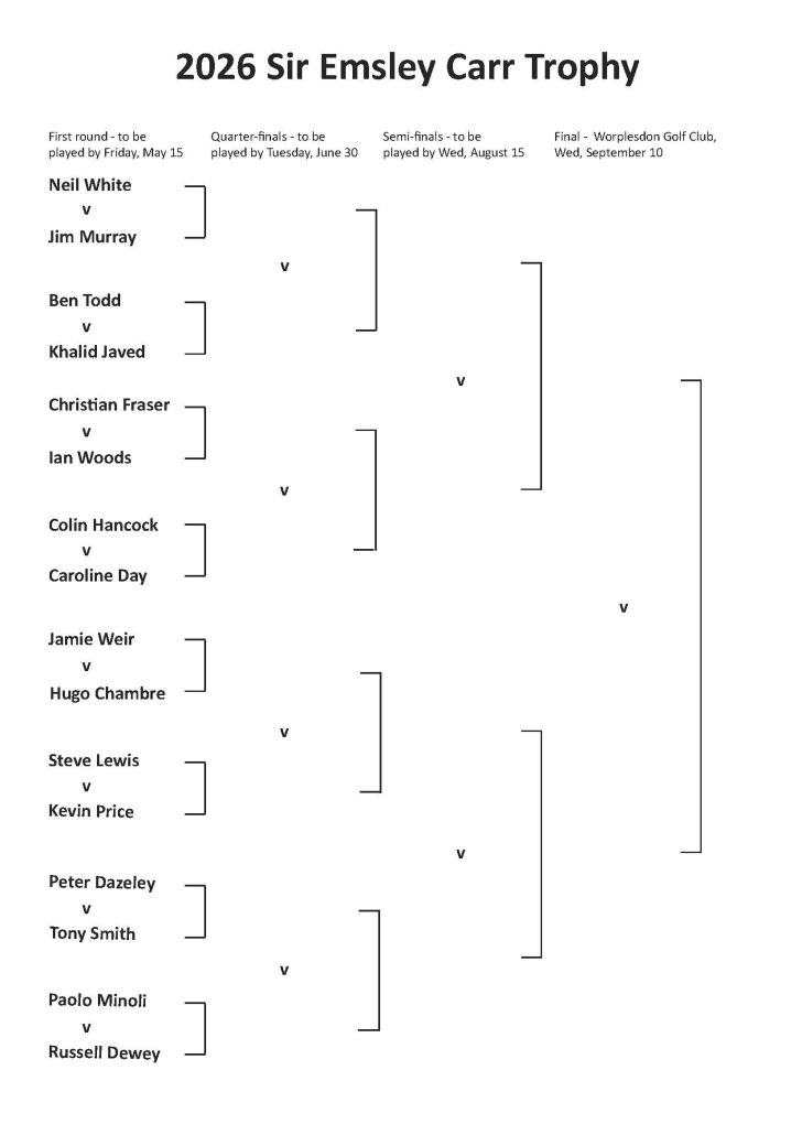 Our rules state: ‘Any Member who fails to fulfil his or her commitment to play a tie by the date fixed by the Secretary, will concede the match, and be ineligible for consideration for the Wryter Cup team that season (even if they have qualified by other means) and will also be ineligible to compete in the following year’s Emsley Carr knockout competition.